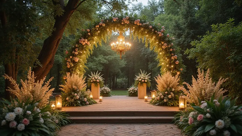Tips: Choose seasonal flowers for an eco-conscious choice. Add hanging lanterns or fairy lights for a romantic evening feel.